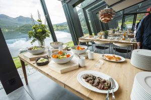 Finding the perfect lunch spot was a bigger challenge than anticipated. After extensive research, First United managed to find a unique and iconic lunch venue by a lake in the beautiful wilderness – we knew this was a perfect match! After the find came the challenge of persuading the owner to let us use his newly built private cabin. We succeeded, and the last work of getting the big lawn done was speeded up, so all was ready for the event.
